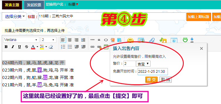 第三步: 按照以下图片参考步骤进行操作即可;特别注意在设置出售价以及公开验证时间的正确操作,否则一切后果由发表者承担!